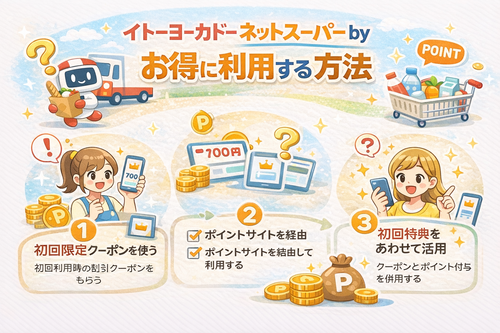 ポイントサイト経由は、ネットスーパーをお得に利用する方法のひとつですが、それ以外にもお得に使う方法はあります。