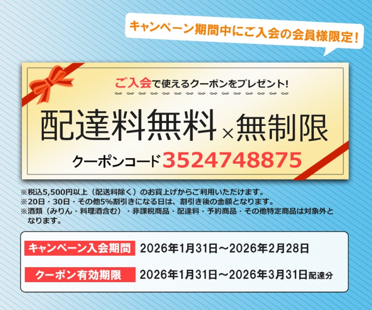 | 利用期間 | 2026年1月31日~2026年3月31日配達分 |