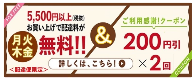 | 無料条件 | 税抜5,500円以上(配達料除く) |