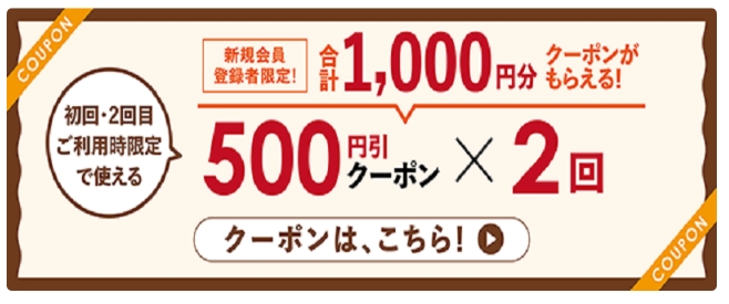 | クーポン内容 | 500円引き × 2回 (合計1,000円分) |