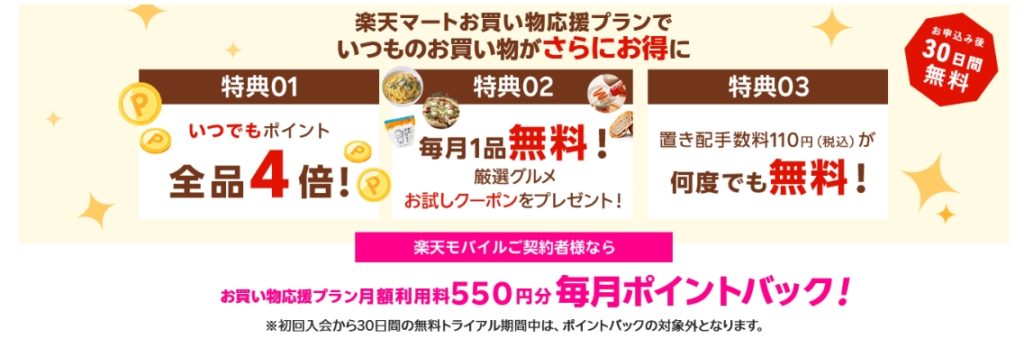 | 利用対象 | 楽天マートを初めて使う楽天会員 |